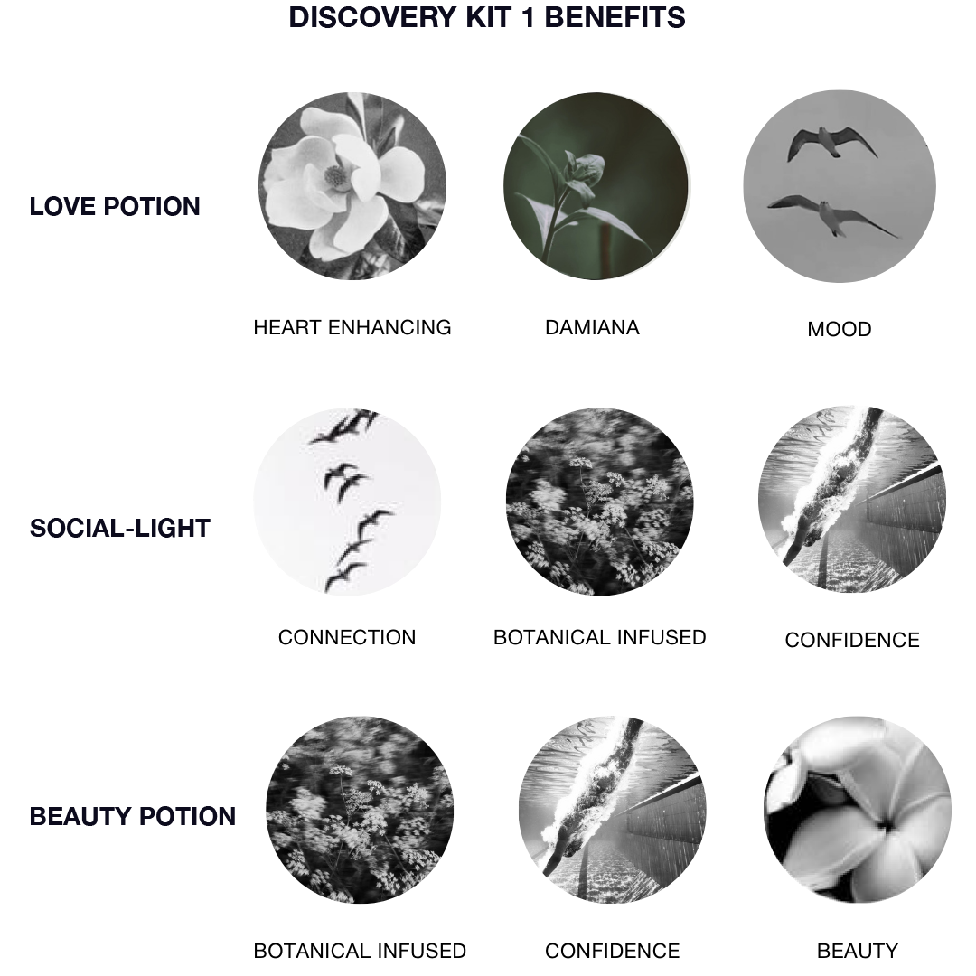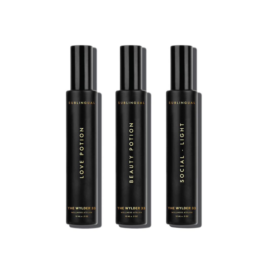 This discovery kit contains three of our best selling formulas, allowing for easy access to love, beauty and connection. Love Potion comes in handy when needing to heal after a break up or call in a new partner. If already coupled up, Damiana warms the heart, boosts mood and calms nerves and deepens bonds. Social-Light was designed for those who prefer to zen-out in their own company rather than cohort in a crowded soiree and can keep this spray on-hand when needed most. Beauty Potion contains botanicals to soften your appearance and create a glow from within while infusing confidence.