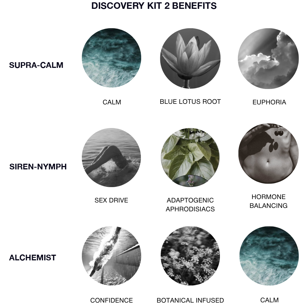 This trifecta of formulas includes our blue lotus plant power house ‘Supra-Calm,’ affectionately, coined, ‘yoga in a bottle’ for its ability to calm the mind and relax the body. Siren-Nymph increases sex drive, balances hormones and makes one feel sexy and magnetic as well as more deeply connected to one’s partner. Alchemist infuses one with courage, confidence and a strong mind-set when faced with challenges or opportunities enabling one to stand in one’s power and embody the transformative properties of the Alchemist.